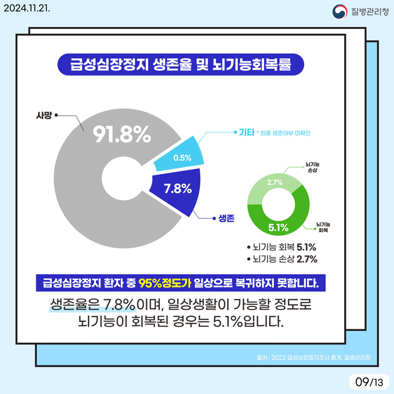 - 생존율 및 뇌기능 회복률