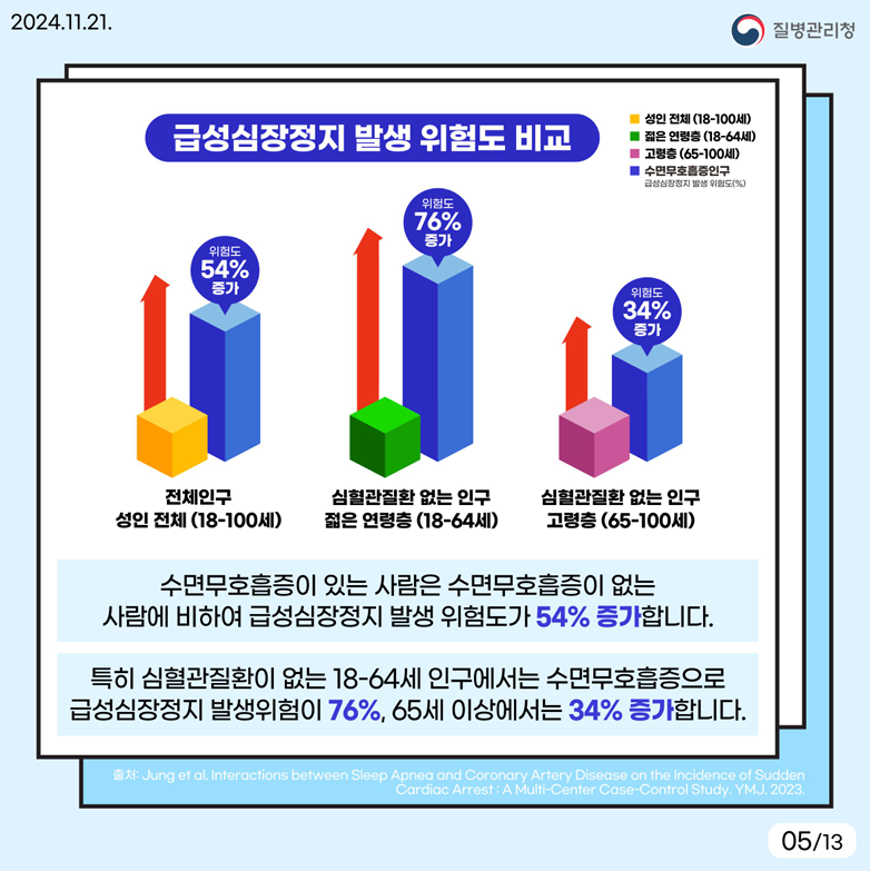 - 수면무호흡증이 있는 사람: 급성 심장정지 위험도 54% 증가