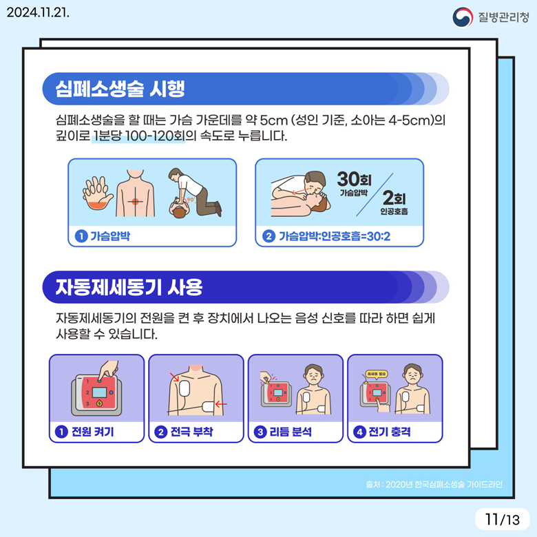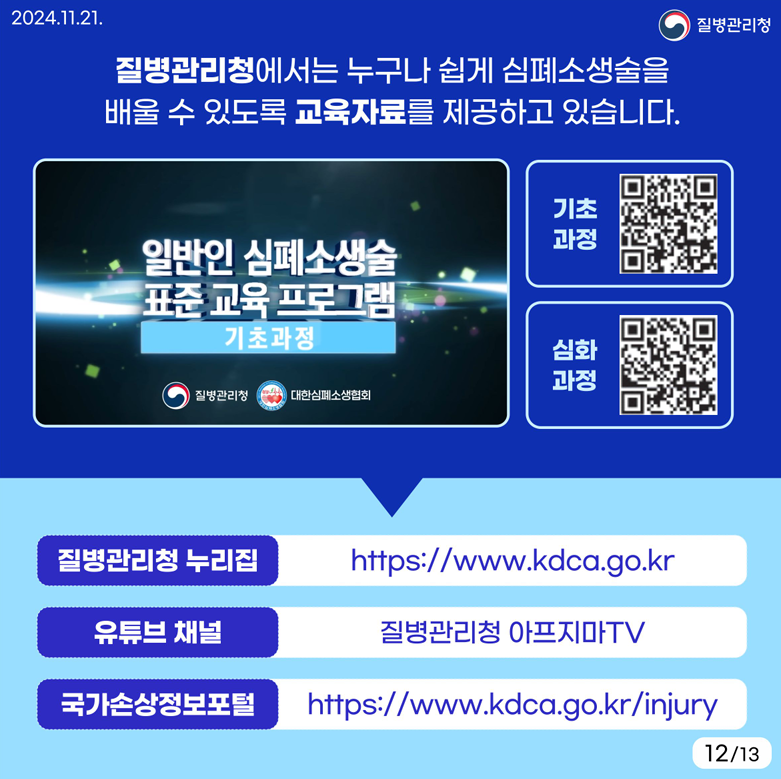 - 질병관리청 제공 교육자료 및 심폐소생술 교육 프로그램