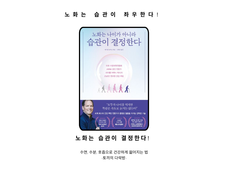 『노화는 나이가 아니라 습관이 결정한다』는 단순하지만 강력한 메시지를 전달합니다. 오늘부터 잠자는 방식, 물 마시는 습관, 호흡하는 법만 바꾸어 보세요. 몸이 스스로 건강을 되찾고, 노화의 속도를 늦추며, 삶의 질을 높이는 변화를 느낄 수 있을 것입니다.