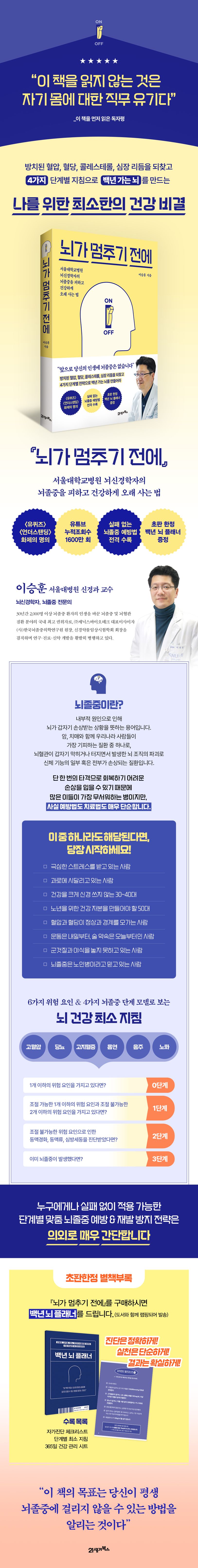 《뇌가 멈추기 전에》(이승훈 저, 2025)는 바로 그 두려움을 없애주기 위해 쓰인 책입니다.