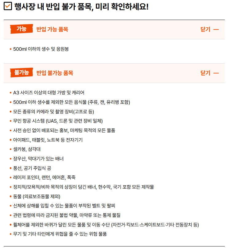 행사 안전을 위해 일부 물품은 행사장 반입이 제한됩니다.