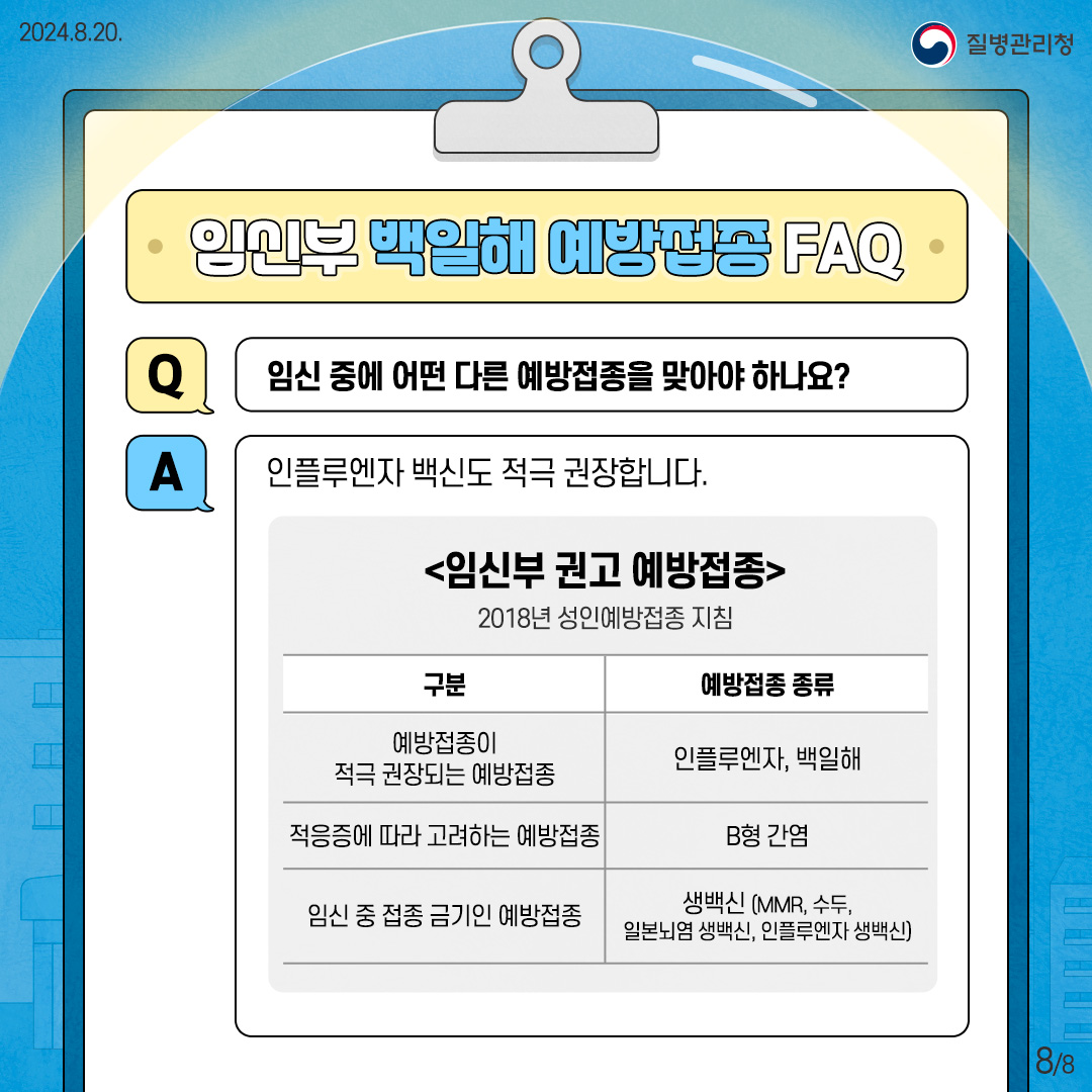 Q1. 임신 중 백일해 예방접종은 안전한가요?