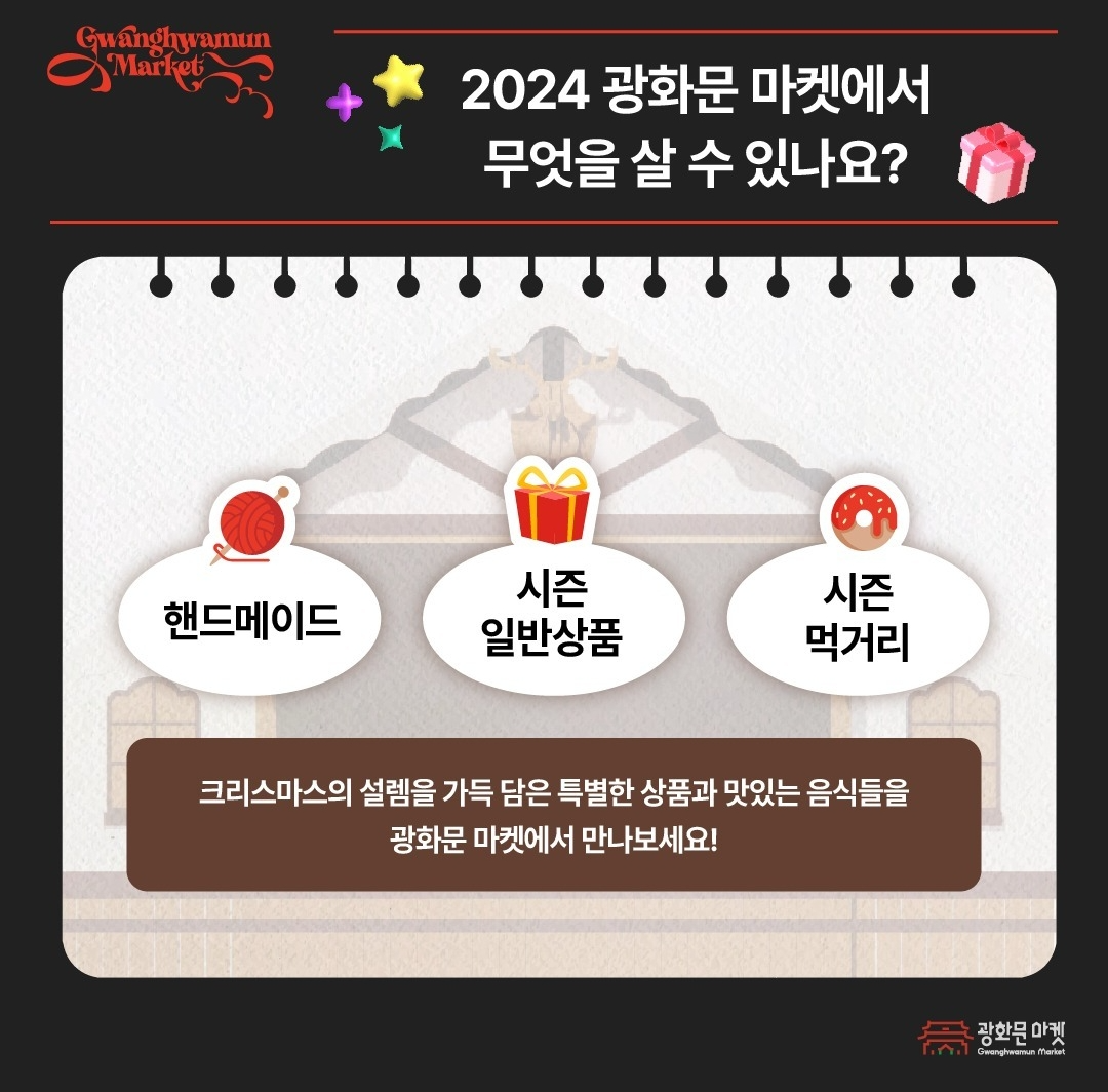 올 겨울, 서울의 중심에서 특별한 크리스마스 분위기를 만끽할 수 있는 광화문 마켓에 참여해보세요!