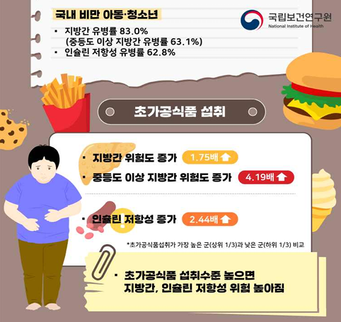 초가공식품의 섭취가 비만 아동·청소년에서 지방간과 인슐린 저항성의 위험을 높이는 이유는 무엇일까요?