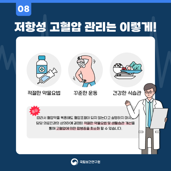 이러한 요인을 인지하고, 건강한 생활습관을 유지하는 것이 저항성 고혈압 예방의 첫걸음입니다.