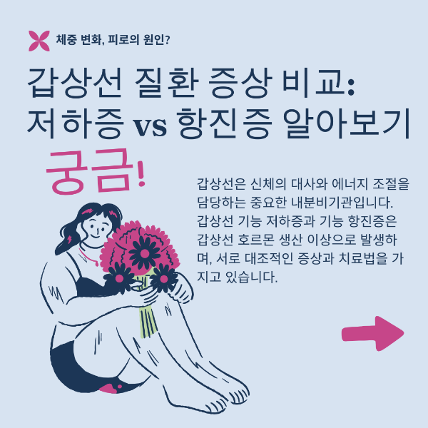 | 증상 | 피로, 체중 증가, 추위 민감 | 체중 감소, 심박수 증가, 불안감 |