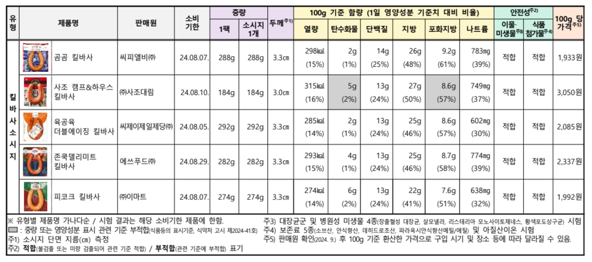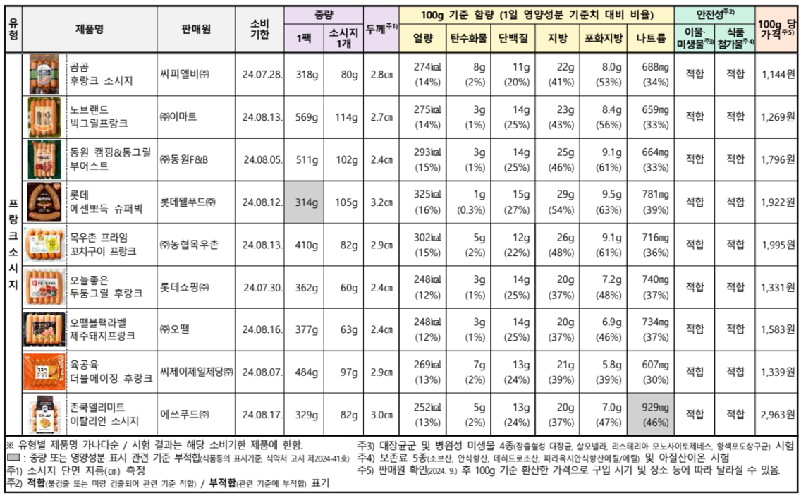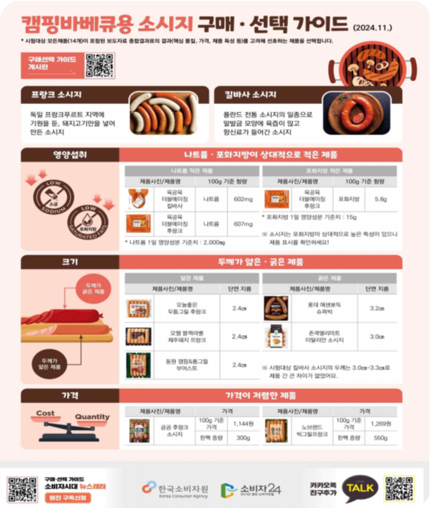 1. 캠핑바베큐용 소시지, 포화지방과 나트륨 함량이 높다